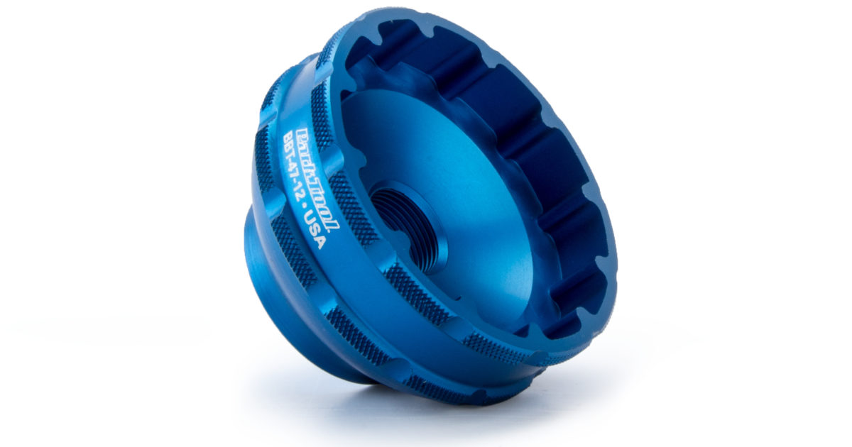 A precision-machined tool for removal and installation of select bottom brackets with a 12-notch tool fitting, including Chris King(R).