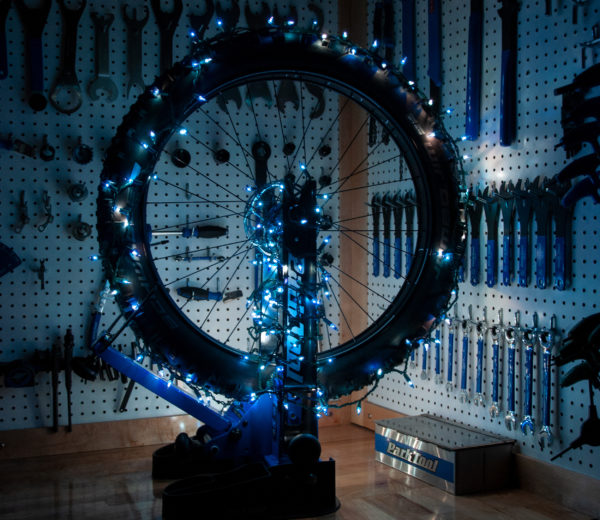 The perfect gift for your favorite mechanic. Send a personalized e-gift card in this design featuring our truing stand lit up with festive holiday lights.