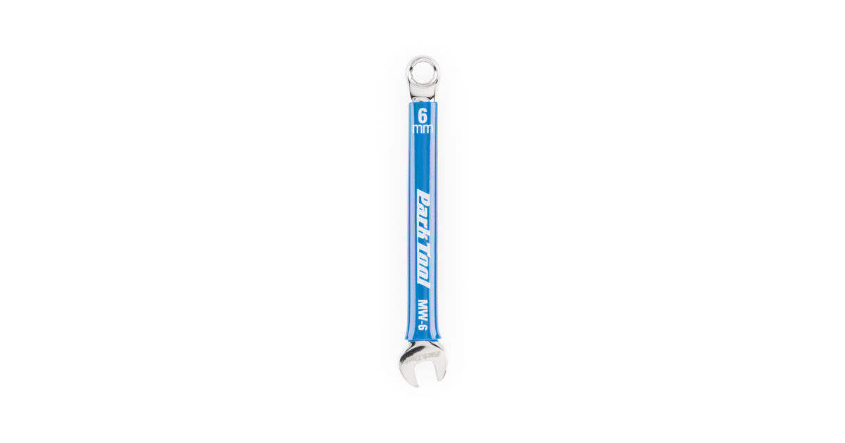 A high-quality 6 millimeter open-end/box-end combination wrench.
