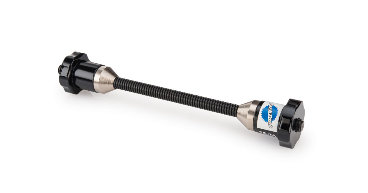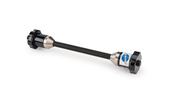 This simple adapter installs onto any thru axle hub so the wheel can be used in any Park Tool truing stand.