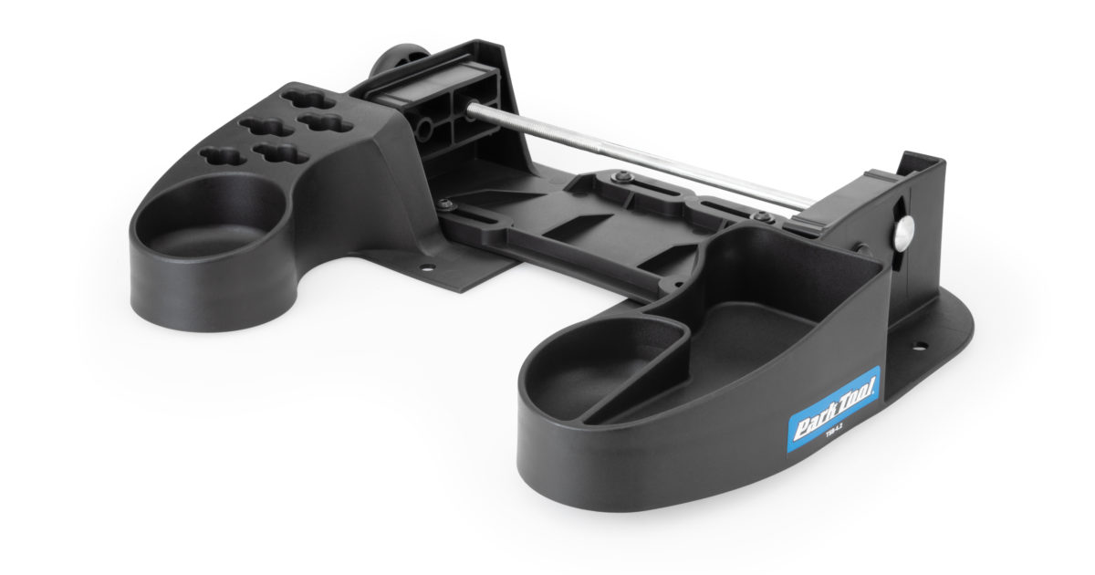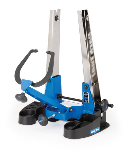 A sturdy adjustable base for Park Tool TS-4.2 and TS-4.3 truing stands with extra compartments for tools and accessories.